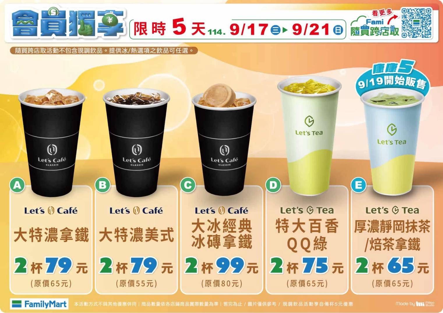 (2025/09/16 17:03)咖啡優惠來了! 全家拿鐵14元 星巴克、7-11「買1送1」