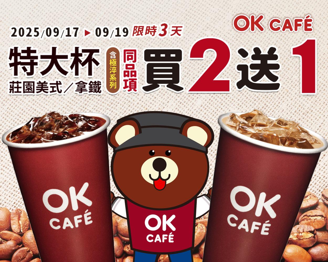 ▼OKmart連3天,特大杯莊園美式、特大杯莊園拿鐵,通通「買2送1」。(圖/翻攝《OK mart》官網)