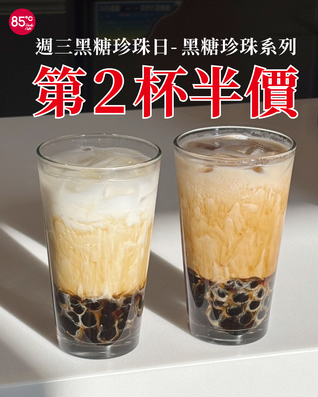 ▼85度C「黑糖珍珠日」,黑糖珍珠系列第2杯半價。(圖/翻攝《85度C》粉專)