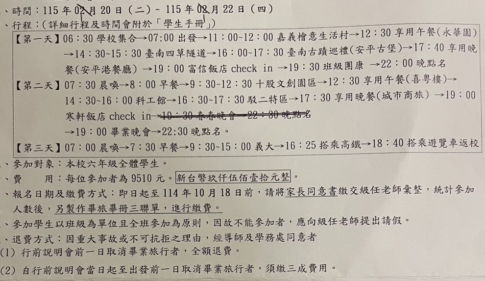 (2025/03/28 16:12)國小畢旅「3天2夜」9510元! 行程曝光網搖頭:真的有貴