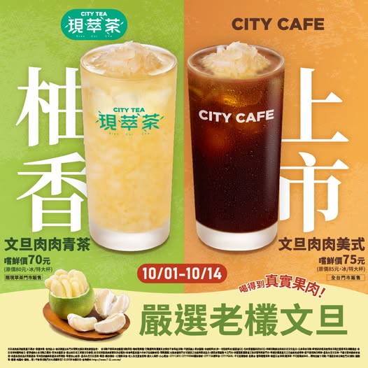 特大杯文旦肉肉青茶嚐鮮價70元,8.8折(原價80元、特價70元)