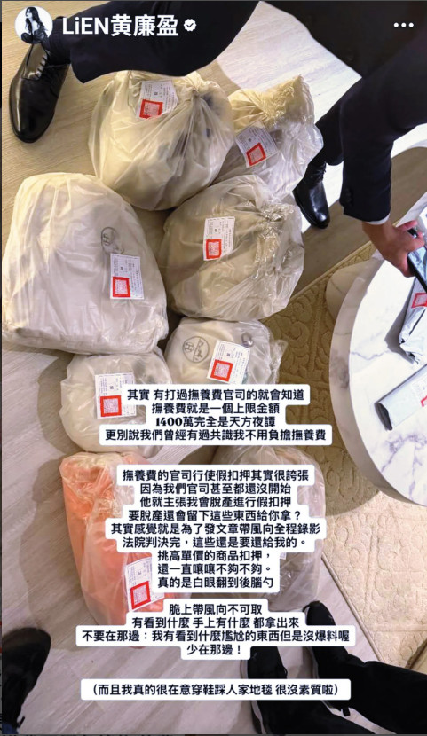 ▼黃廉盈家中財物無預警遭扣押,她氣得發限動,嗆夏天倫索取1,400萬元高額撫養費。(圖/翻攝自黃廉盈IG)