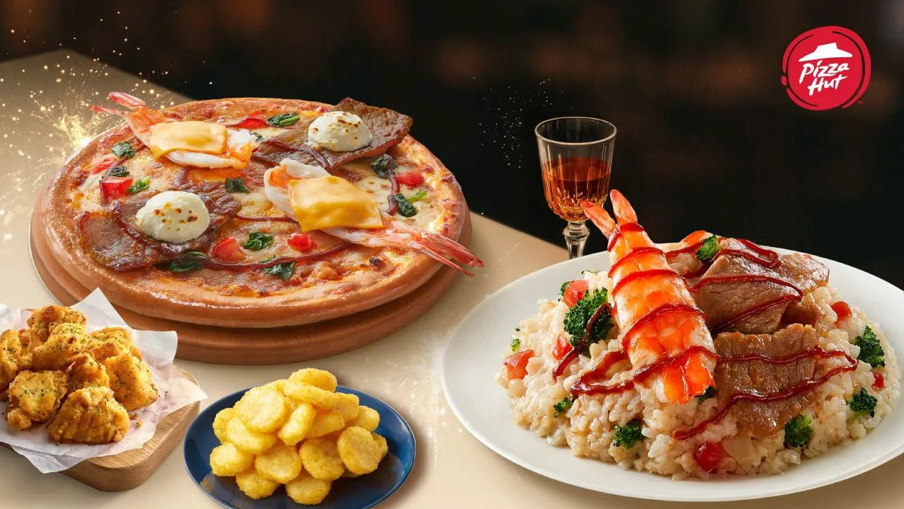 ▼嫩牛大蝦個人披薩:XL豪華套餐249元;嫩牛大蝦起司燉飯:單點特價199元(原價209元)/L經典套餐224元。(圖/必勝客)