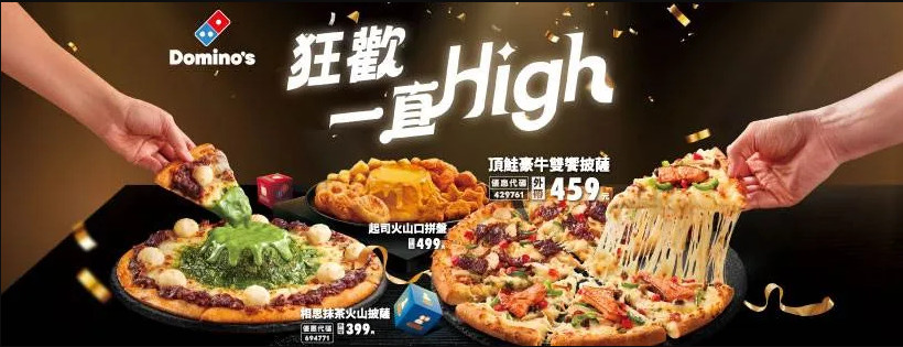 達美樂此次主打互動式體驗,即日起推出「一擲High狂歡盒」,外盒不但可變身成兩顆骰子,還提供36種互動遊戲。內容物更超狂祭出「三本柱」,包含鋪上炙烤鮭魚肚和炭燒牛肉的「頂鮭豪牛雙饗披薩」、紅豆、Q彈麻糬搭配濃郁抹茶火山的「相思抹茶火山披薩」,「起司火山口拼盤」則集結香烤雞條、鱈魚星星等熱門副食,搭配起司火山,超豐富的內容,最適合年末聚會了!