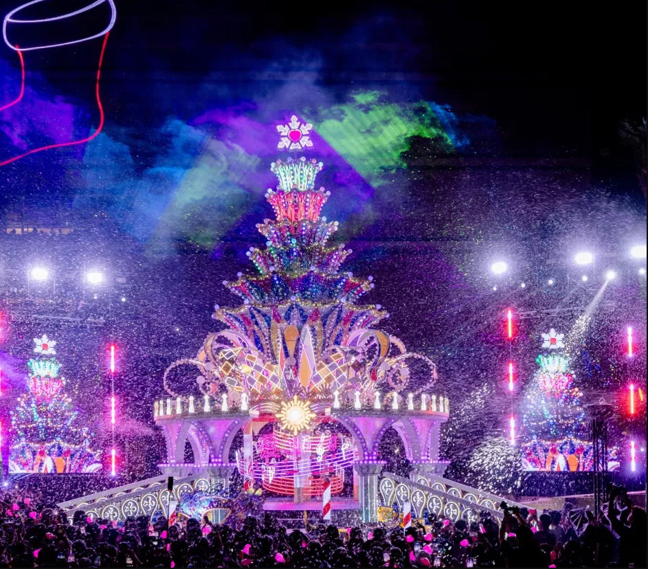今年首度攜手 LINE FRIENDS 打造「歡樂馬戲團」主題,市民廣場變身為巨大的魔幻樂園,主燈秀結合裸視 3D 光雕,是親子與情侶必訪的首選。