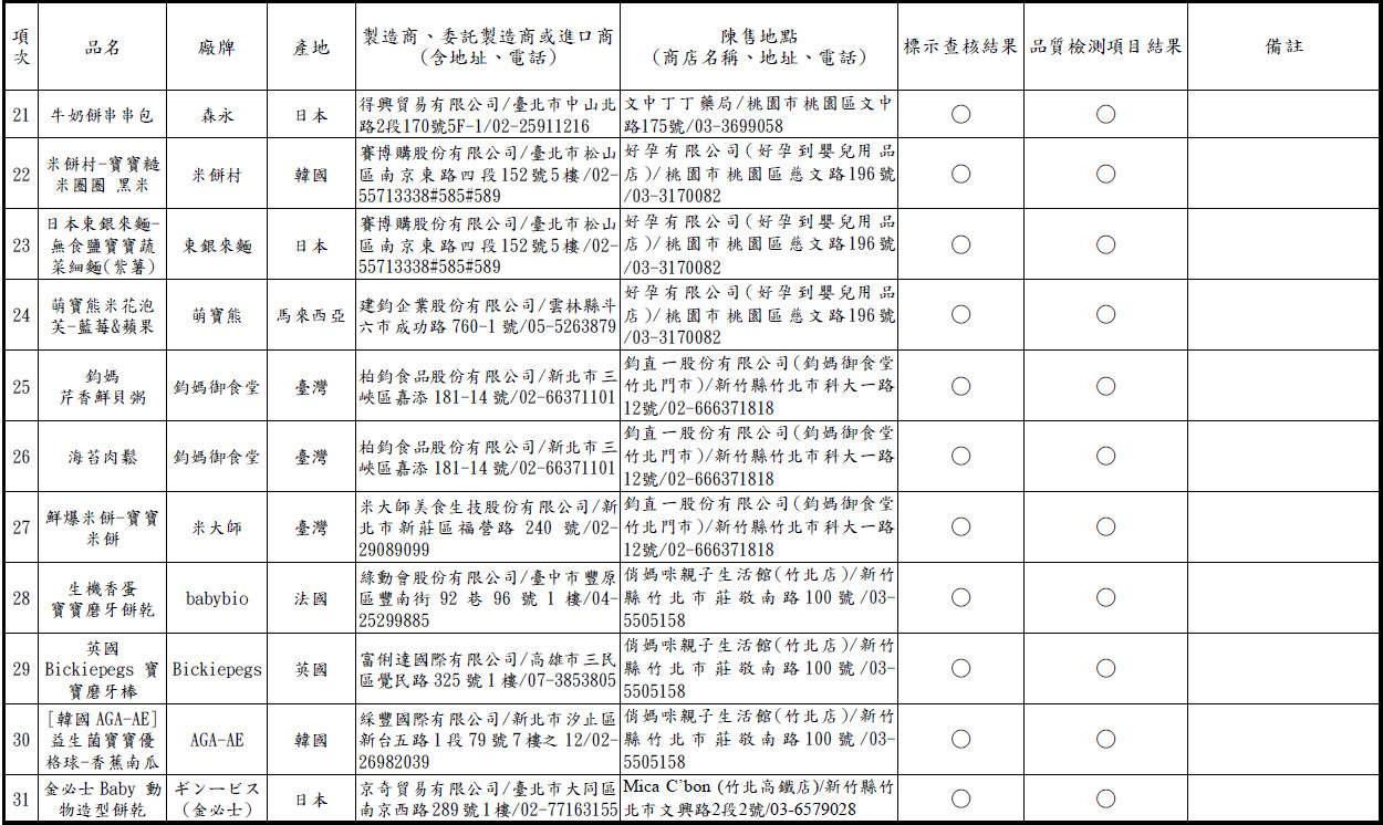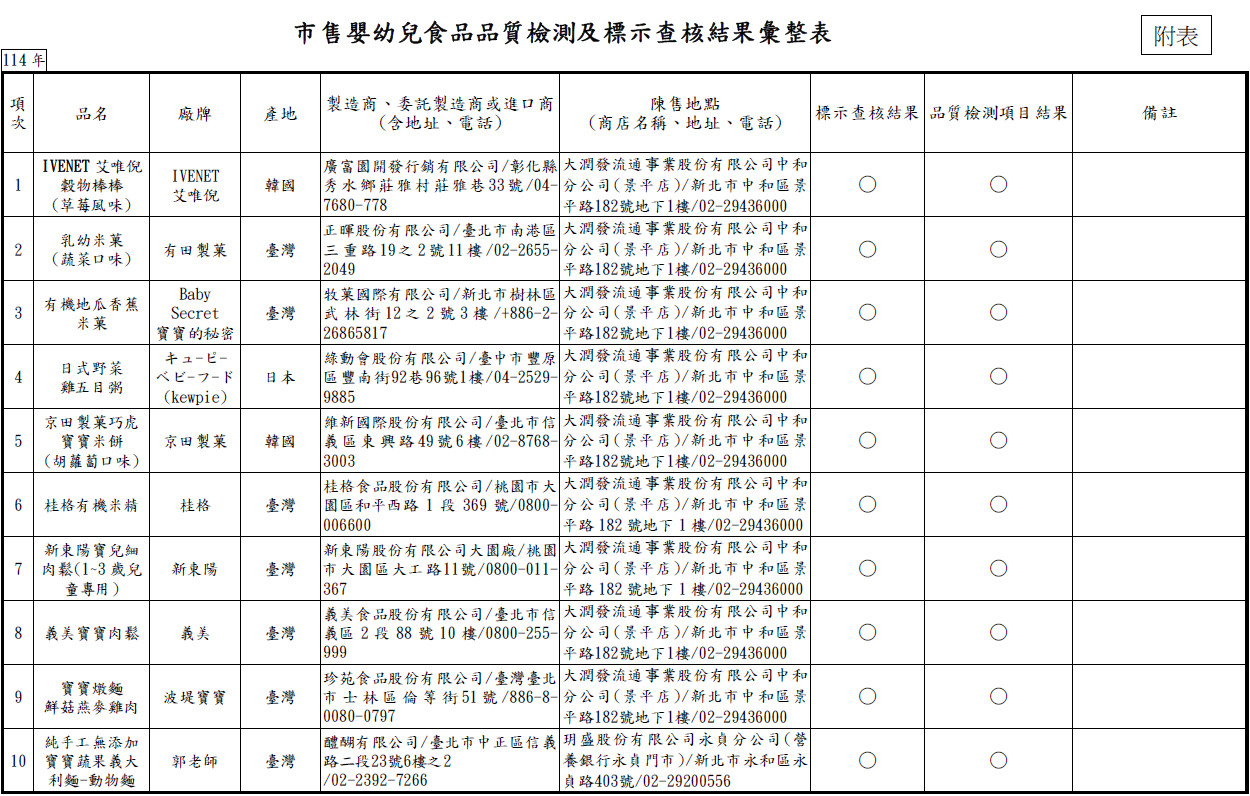 ▼市售嬰幼兒食品 品質檢測及標示查核結果彙整表。(圖/翻攝《消保會》官網)