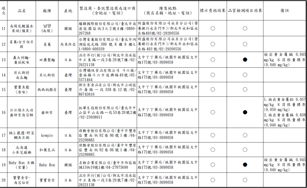 (2025/12/09 18:00)4款嬰幼兒食品「重金屬超標」 台日韓品牌都入列