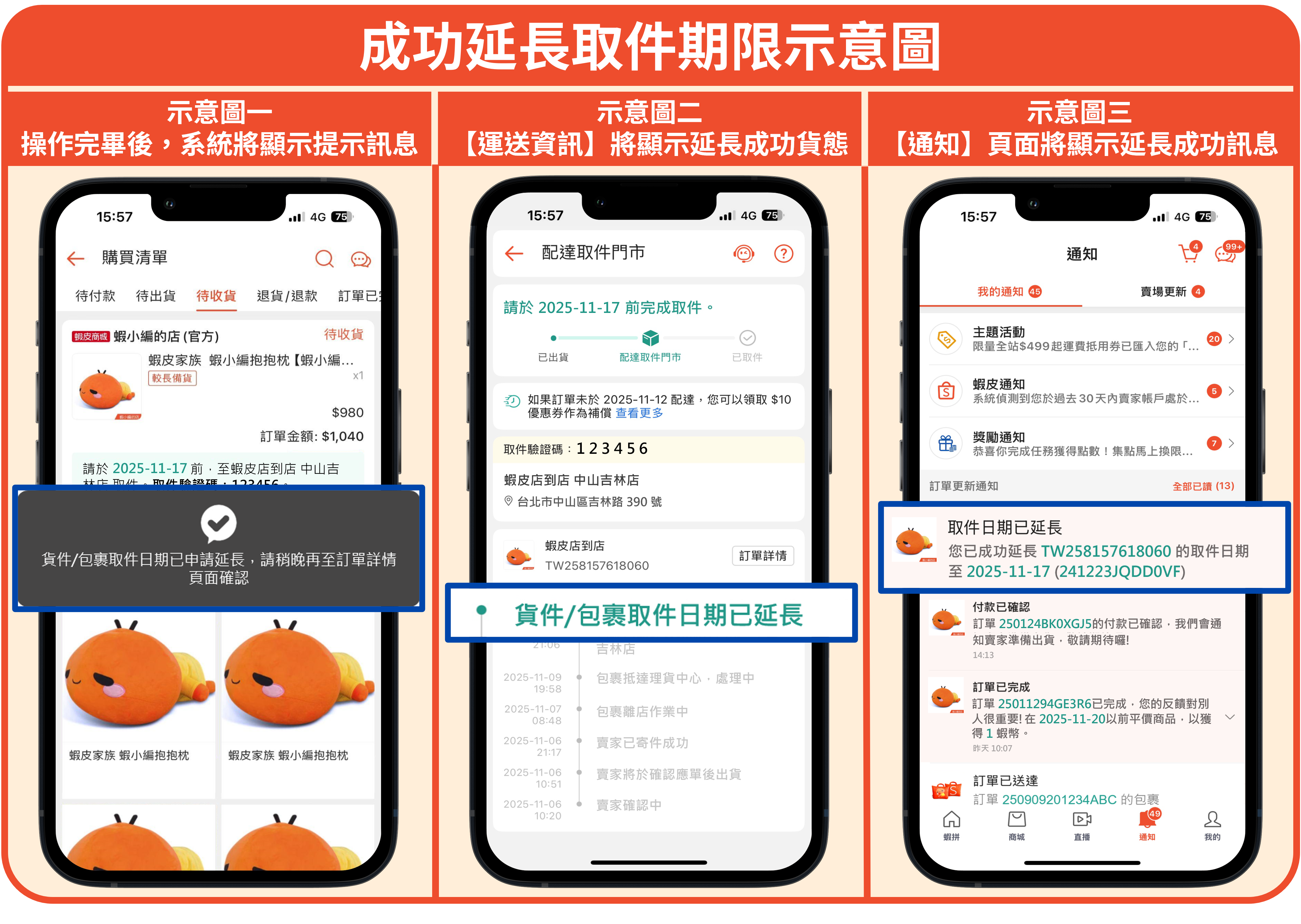 ▼成功延長取件期限示意圖。(圖/翻攝《蝦皮購物》官網)