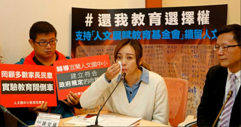 ▼人文中小學在2017年原經營者便曾因財務問題不被縣府認可而無法續營,那時身為家長的資深藝人季芹(中)召開記者會泣訴孩子受教權受損「晚上都在做惡夢」。(圖/報系資料照)