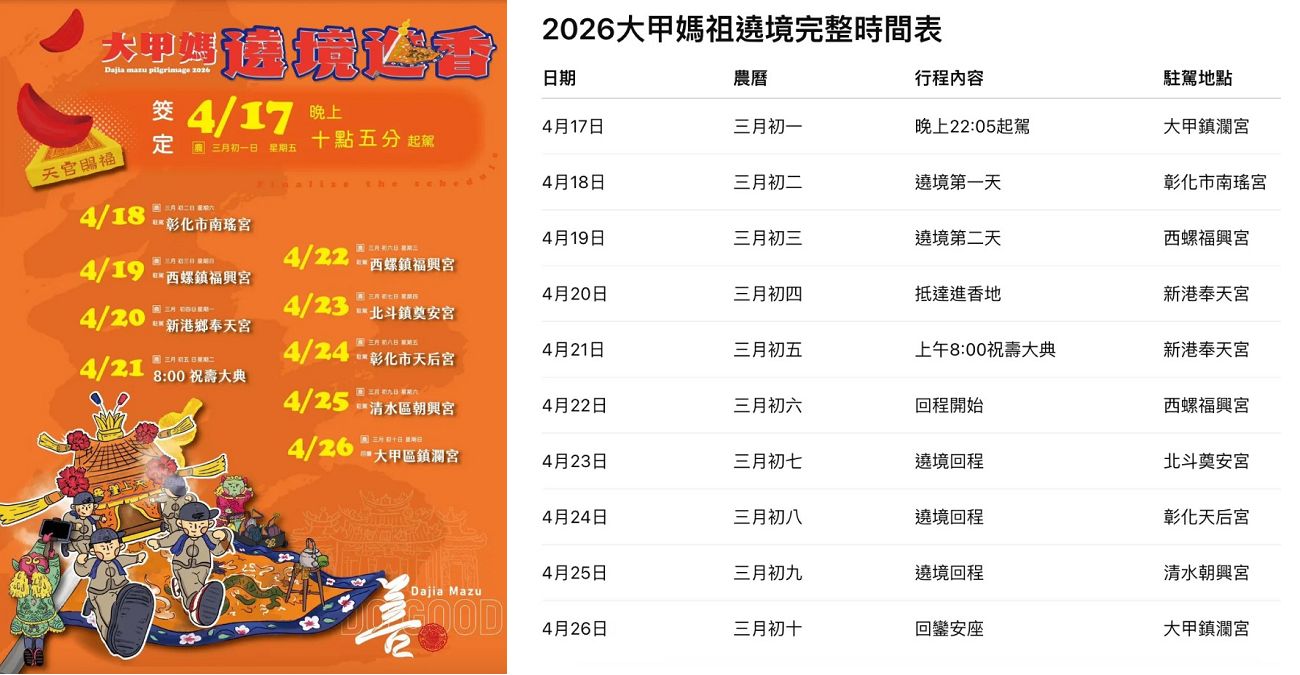 2026大甲媽祖繞境完整時間表