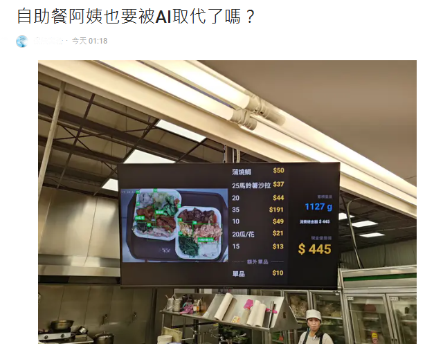 隨著AI持續進步,AI也開始應用在日常生活及工作中,不過一名網友表示,自己千算萬算,還是沒有料到被AI取代的工作中有竟然有「自助餐阿姨」,貼文曝光後立刻吸引48萬次瀏覽,也掀起了網友對自助餐阿姨的討論,部分網友表示,這樣計算價格比較沒有爭議,也有不少網友哀嚎「少了自助餐的醍醐味」。