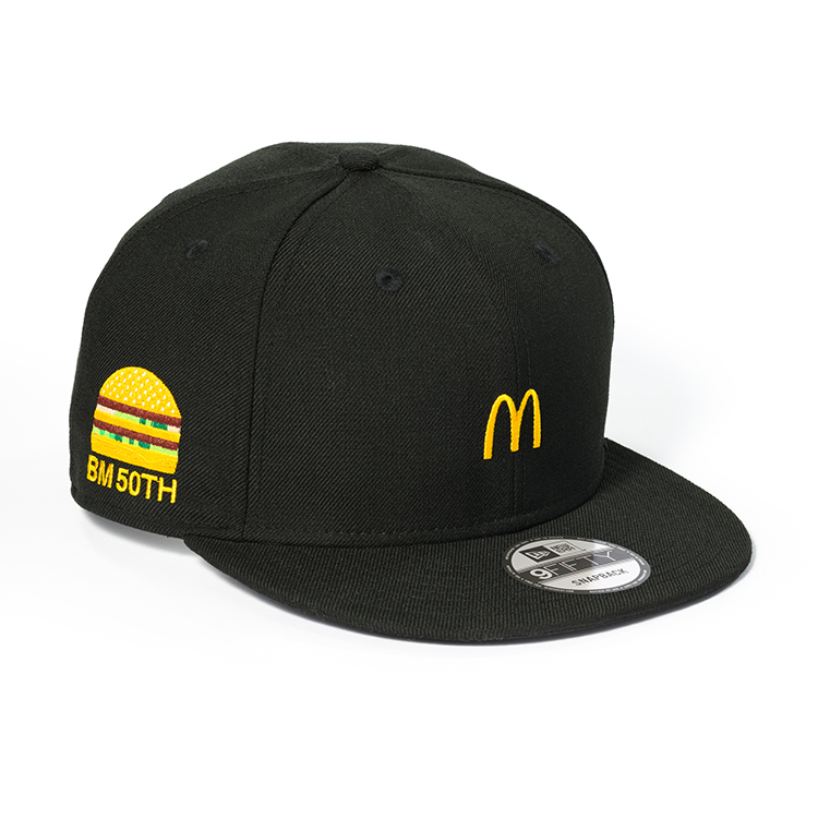 聯名品牌也不僅有Uniqlo,卡西歐旗下手錶G-Shock及知名製帽品牌New-Era也一同慶祝大麥克生日。G-Shock 手錶和麥當勞攜手合作推出限量款紀念錶款,錶面上除了有麥當勞最經典的金色拱門,還會清楚顯示 BIG MAC 的紅色字樣,錶背與錶帶也都有巨無霸Big Mac的漢堡圖案。錶盒也被設計成大麥克樣,最外面還以裝漢堡的紙盒做包裝,該款手錶要價14,900日圓(約新台幣4,077元)。New Era則是推出印有麥當勞M型LOGO、大麥克50週年圖案的帽子,售價5,900日圓(約新台幣1,615元)。