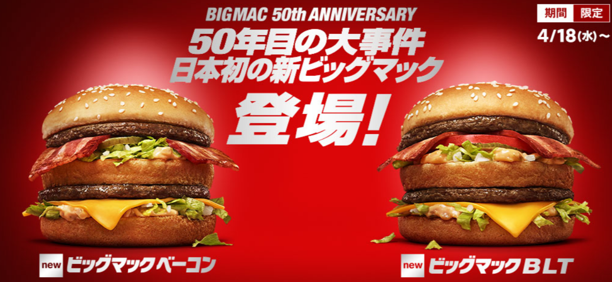 ▲日本推出大麥克兩款新漢堡,左為培根,右為BLT口味。(圖/擷自日本麥當勞網站)