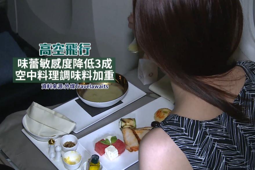▲人體在高空飛行期間,味蕾敏感度會降低3成,通常空中料理都會使用調味料加重味道(圖/東森新聞資料畫面)