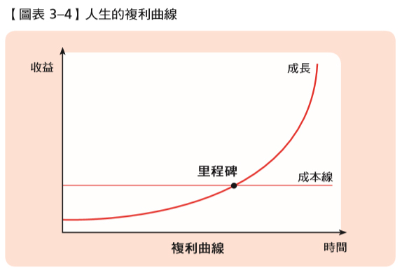 假如以上的「症頭」你都有,那很有可能你存的錢,永遠都無法衝破複利曲線的「成本線」(見圖表3-4),過不了里程碑這個點,無法加快財富累積的速度。