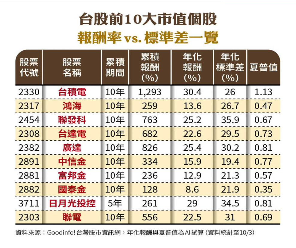 實戰操作上,他建議直接從台灣50成分股中,挑選夏普值排名前10的個股。「這份名單,就是當前市場上經過驗證、『風險調整後報酬率』最有效率的頂尖標的群。」這個方法與效率前緣精神一脈相承,是將理論化為行動的快捷鍵。