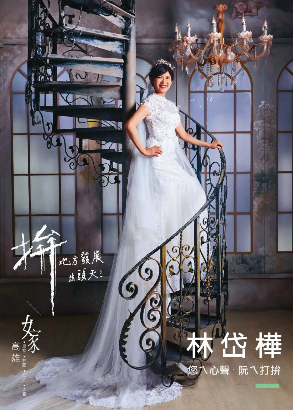 ▼林岱樺參選立委時曾披婚紗喊「嫁高雄」,如今她遭檢調認定與住持釋煌智的關係超乎一般人交情,住持甚至有林團隊的人事、敘薪決策權。(圖/翻攝林岱樺臉書)