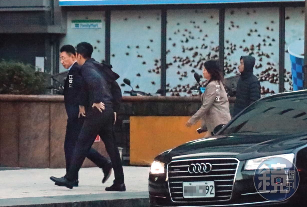 就在江啟臣宣布參選台中市長隔天、12月15日,本刊直擊,江在台北的副院長官邸宴客,當晚住在官邸,晚間10點多客人離去,江的幾位助理則待到晚間11點多,公務車才緩緩從官邸駛離,往西邊駛去,11點半左右,公務車抵達新北某路口,讓林姓主任下車返家。