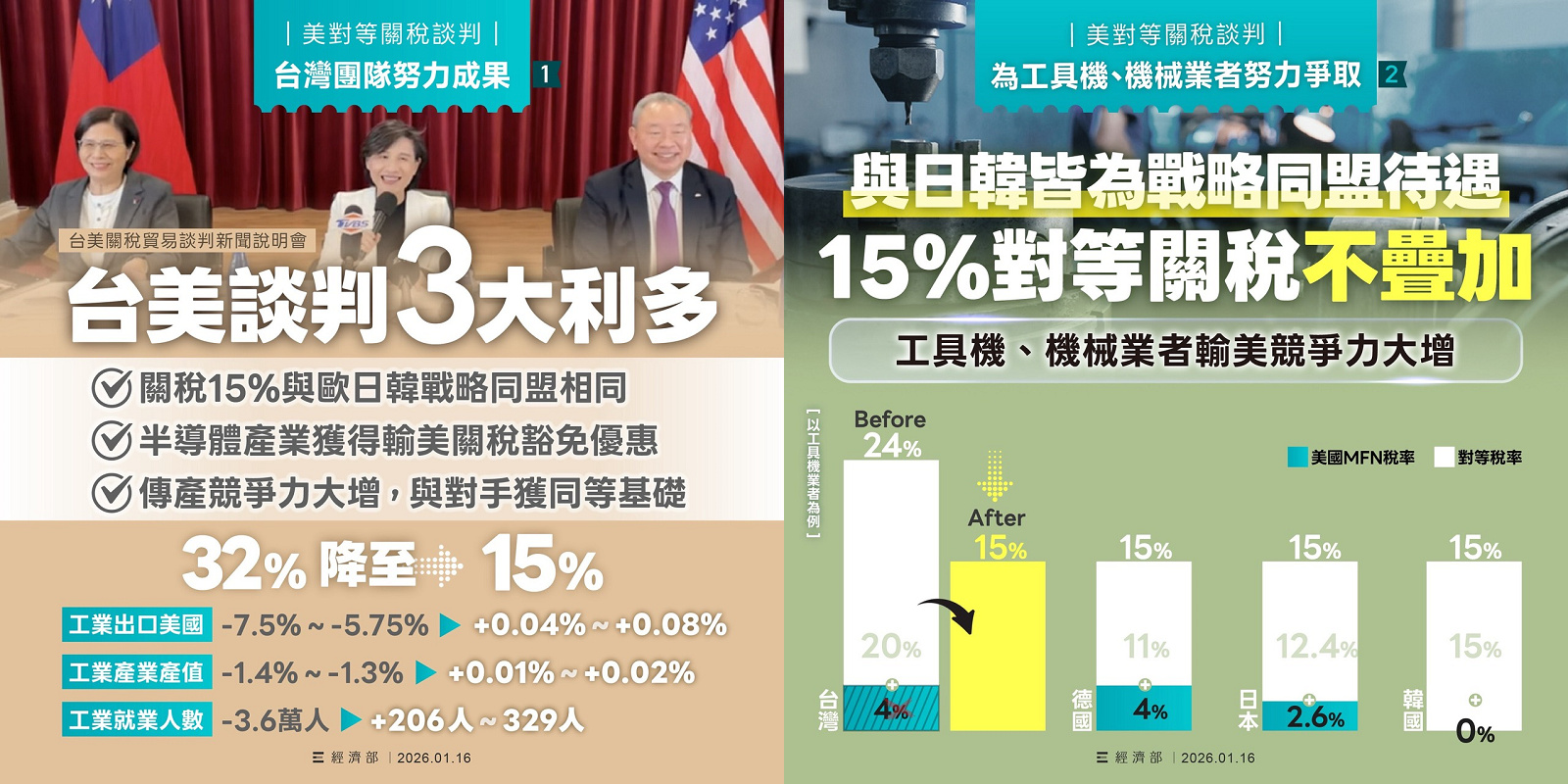 (2026/01/16 13:25)台美關稅拍板! 經濟部:打造公平競爭條件、有利美國布局
