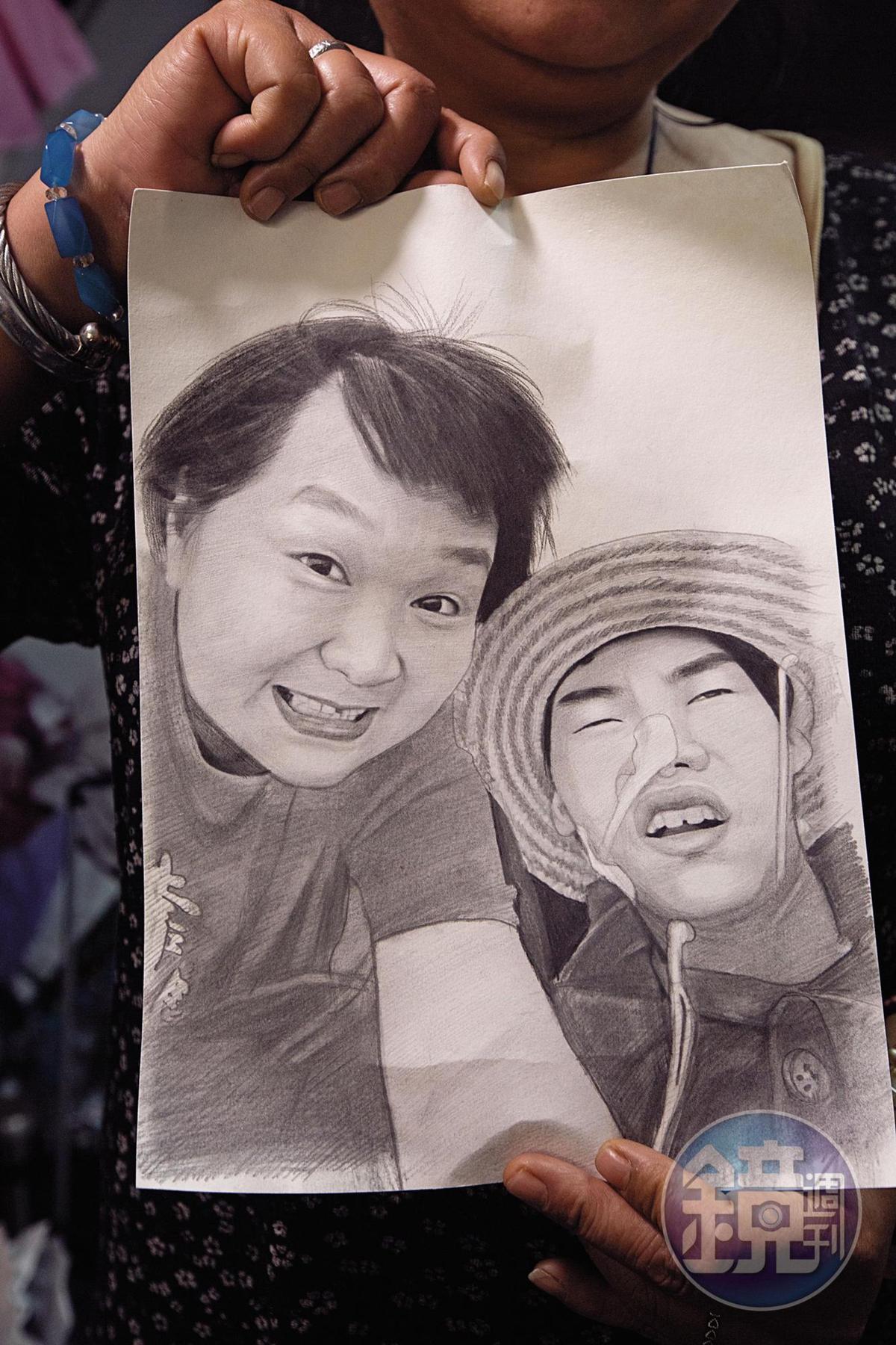 ▲陳嘉齡曾讀過美工科,小比生病後,她偶爾還會畫圖,她曾畫下自己跟小比開心的模樣。(圖/鏡週刊)