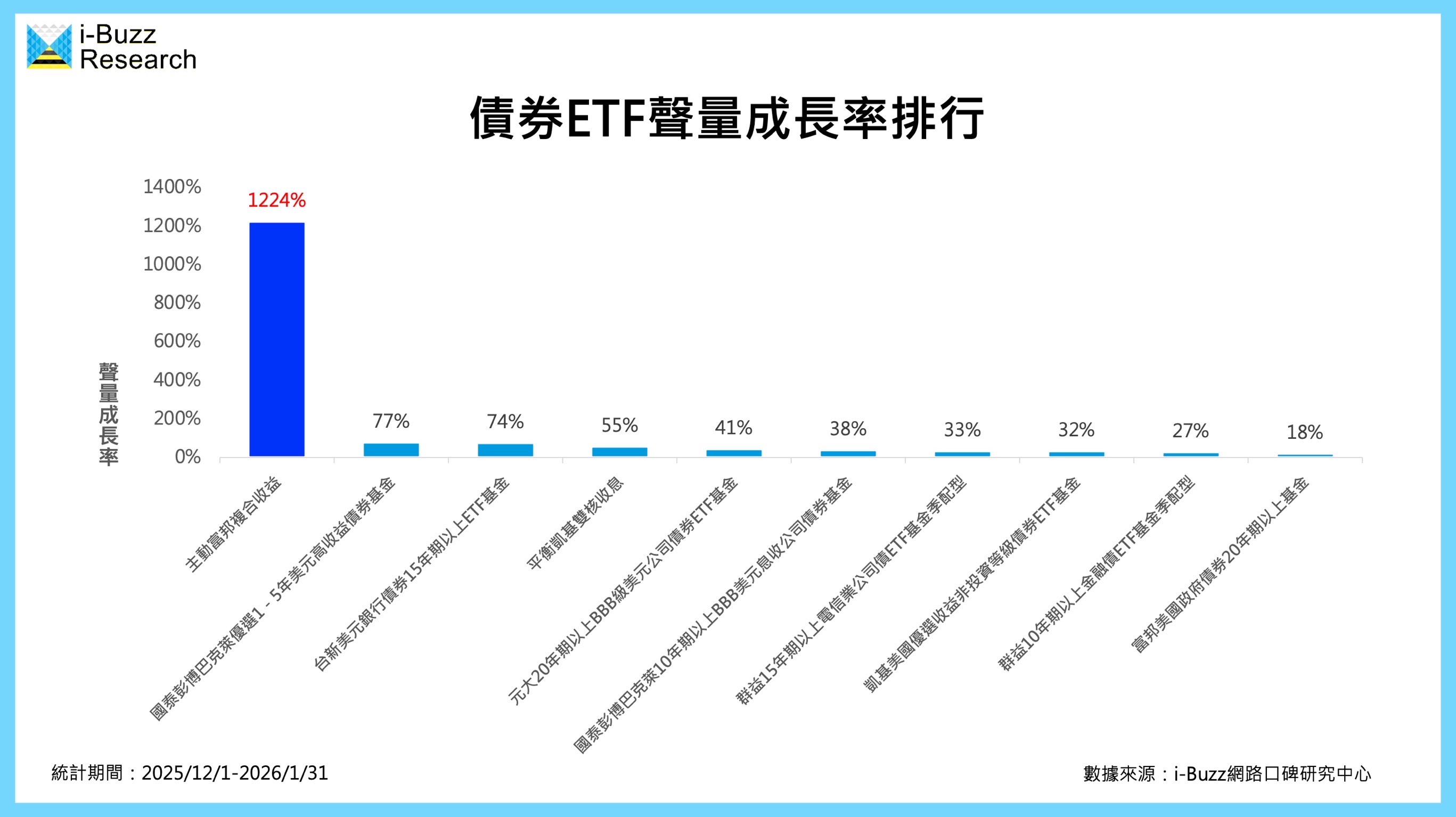▼債券ETF聲量成長率排行。(圖/i-Buzz網路口碑研究中心提供)