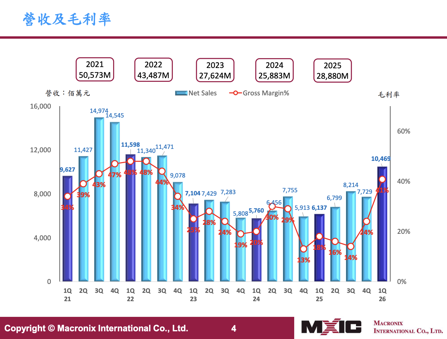 分析本季營收比重,NOR型快閃記憶體依然是核心支柱,佔比達58%,營收年成長達47%。而表現最為亮眼的是 NAND型快閃記憶體,佔比提升至30%,營收較前一季暴增90%,與去年同期相比更是驚人的 382%成長。此外,唯讀記憶體(ROM)佔營收8%,晶圓代工(FBG)則佔4%。本季稅後淨利最終定格在17.79億元,相較前一季的虧損2.94億元,實現了強勢的「轉虧為盈」。