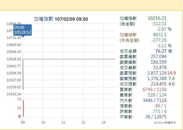 ▲台股開盤下跌。(圖/翻攝自奇摩股市)