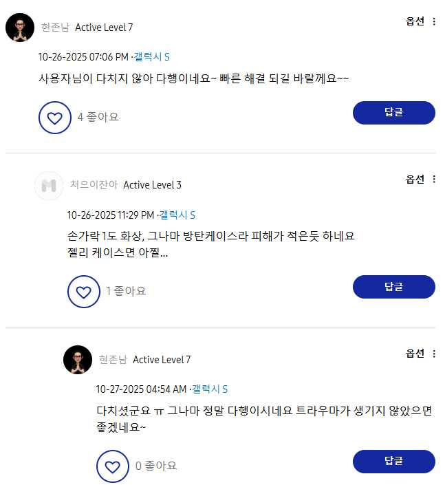 另一位名為「냐야아옹(Nyaya-aong)」的使用者也回覆稱「S25爆炸的新聞應該有好幾件」,並表示疑似已有4起類似案例。