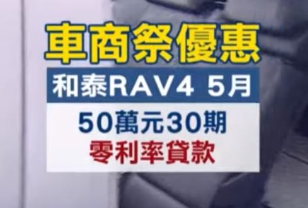 汽車原廠分公司公關經理廖淑華:「報稅的季節其實壓力都滿大的,很多人你知道,會特別可能會擔心自己的荷包,不太願意去做這樣子的一個消費,520前領牌免費,免付牌燃稅這件事情,我相信應該會帶動。」肌肉線條多邊造型,還搭載智慧型的遠光燈,休旅界一哥的RAV 4也加入戰場。