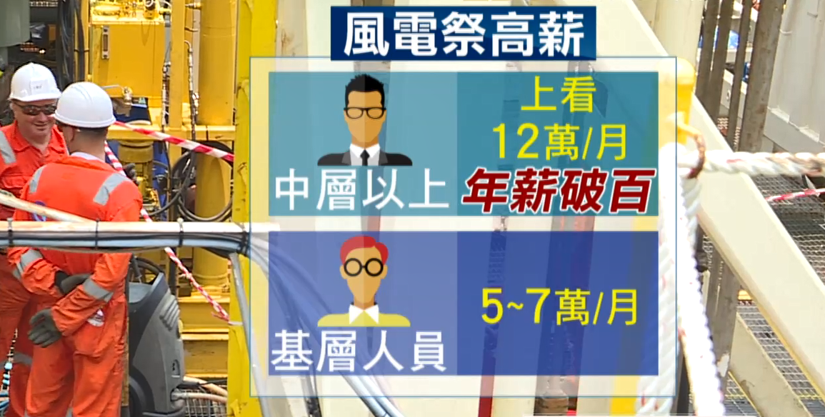 祭出高薪就可達到5~7萬元,中層以上每月上看12萬元,年薪輕鬆破百萬。風電維修經理,kai:「體力上要求比較大一點,年紀比較年長之後,建議可以分析資料,因為他有很多經驗。」