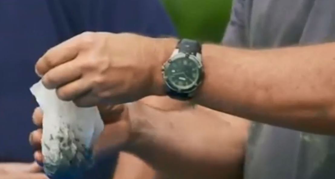 ▲生蠔繁殖員同樣偉大,剛出生的生蠔像泥土,但這一包就有486萬個生蠔在裡面。(圖/東森新聞資料畫面)