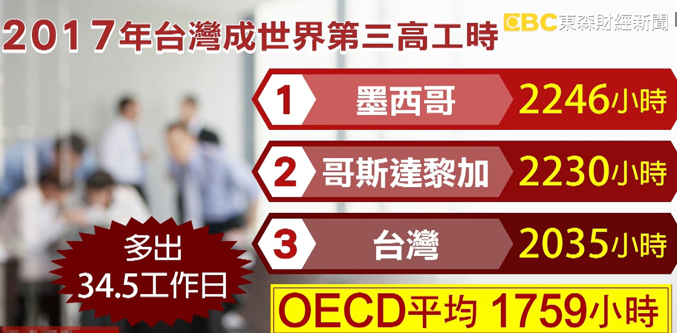▲台灣名列全球排名第三高工時,比OECD國家平均多出34.5個工作日。(圖/東森新聞資料畫面)