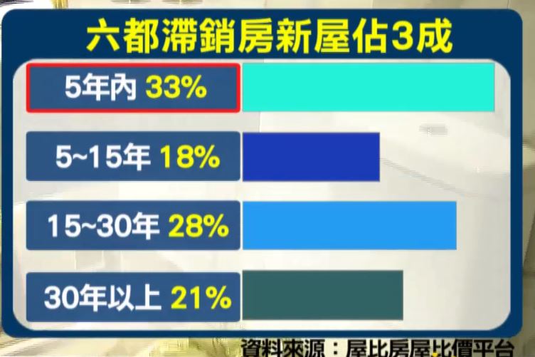 屋比房屋比價創辦人葉國華:「在供給量大,然後物件提供量也多,銷售期也拉長的情況下,那投資客也離場的情況下,再加上稅金增加的情況下,這樣的市場可以說是市場的一個票房毒藥。」連新房也陷苦戰,滯銷房中,屋齡5年內的新屋就佔了3成。