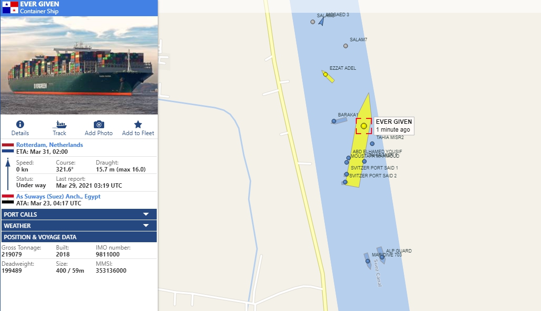▼長賜輪24日卡住畫面。(圖/翻攝自vesselfinder)