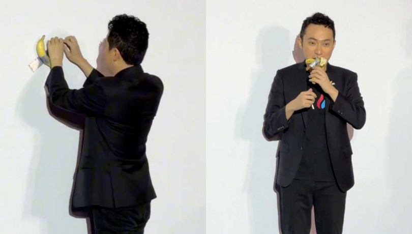 ▼孫宇晨斥資620萬美元買下《喜劇演員》後,將香蕉吃掉。(圖/翻攝自X/sunyuchentron)