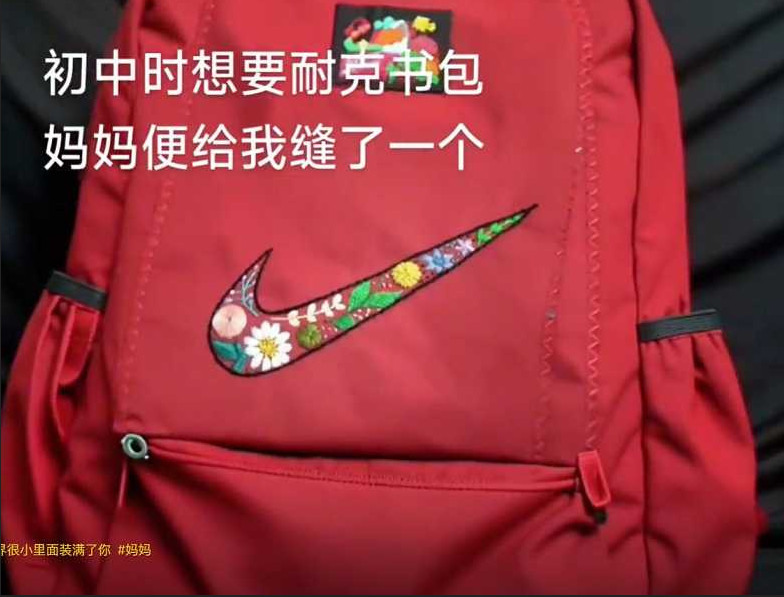 賺人熱淚!中國陝西一名劉姓男子,曬出媽媽親手縫製的「NIKE」書包,並分享背後的故事,是媽媽在他小時候縫的,卻被同學嘲笑「山寨」而被他收進衣櫃,如今長大成人的他,心態也有所改變,視這款書包為「無價珍寶」,令大批網友感動不已。