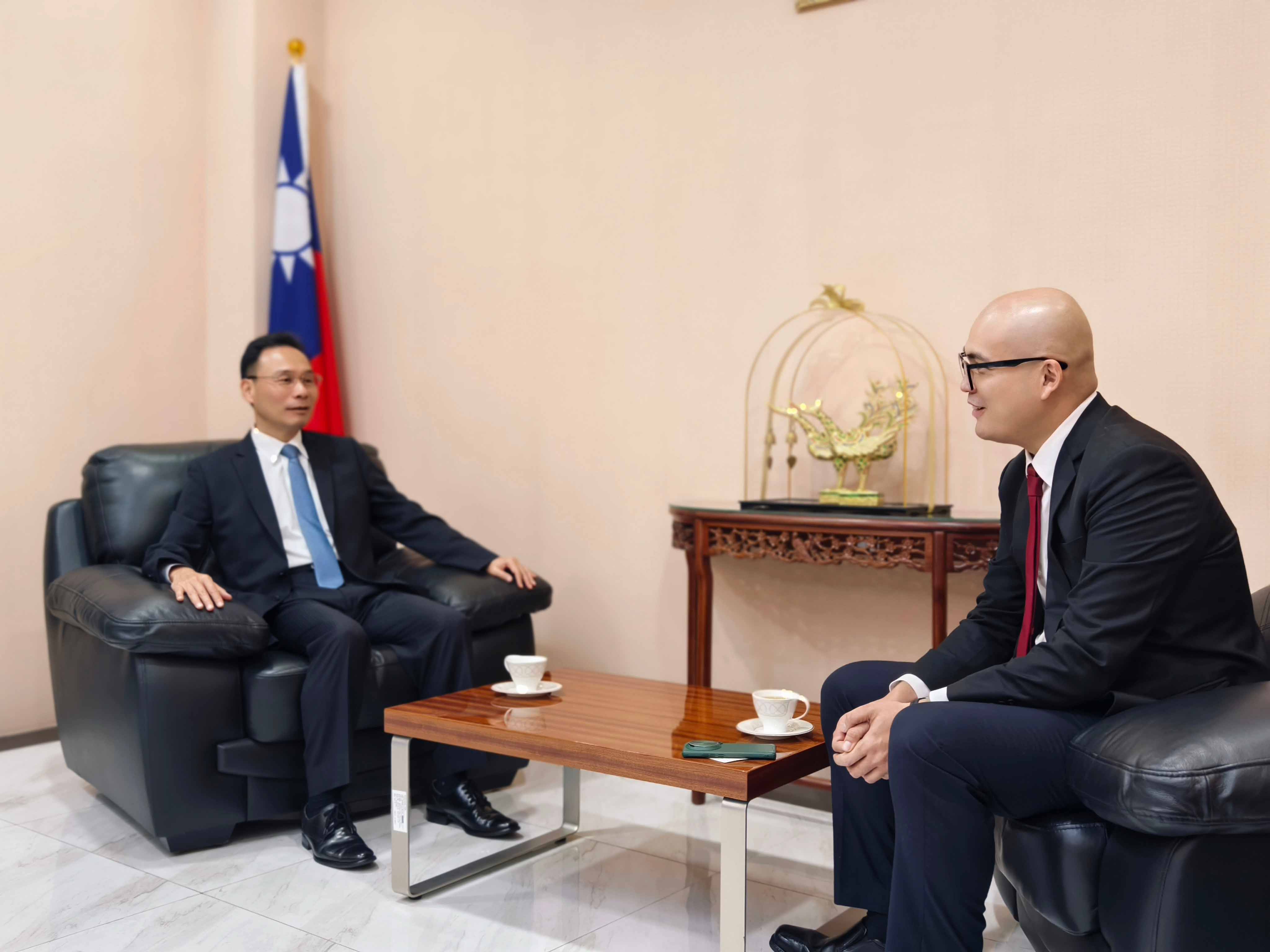 駐泰國代表藍夏禮於10月20日接見第六屆「海外十大傑出青年」得主、泰國華文媒體「VisionThai 看見泰國」創辦人李致德,就文化及新媒體發展進行深度交流。藍代表對李致德在泰國深耕十餘年,運用軟實力促進雙邊理解的成就給予高度肯定。