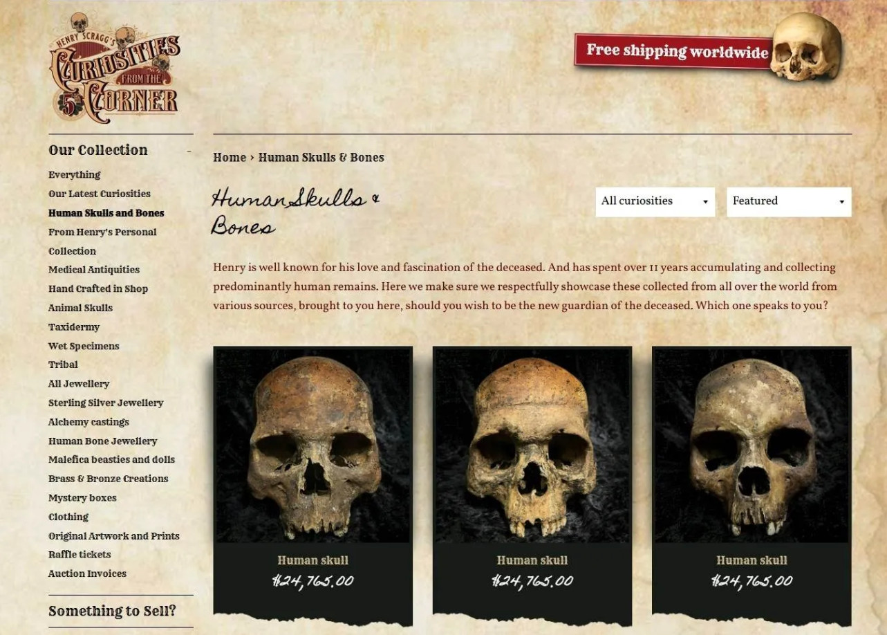 「第五街角珍稀品」古董店老闆斯克拉格近日也在網媒訪問時承認:「某些較古老的骸骨商品應是近期被挖出的」,甚至有賣家曾表示「手中顱骨來源是建築或污水處理承包商挖出的遺骸,但很少人能提供確切的來源」。