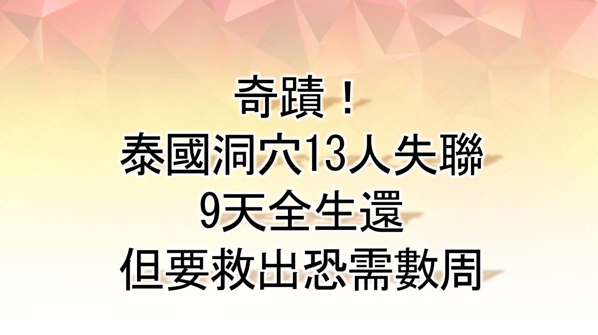泰國一支闖洞穴探險的足球隊找到了!當局搜索9天後總算傳出好消息,清萊省2日晚間證實,13人已被尋獲且仍生還,但具體健康狀況還有待確認。
