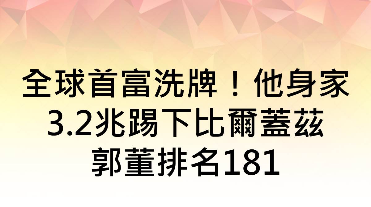 全球首富洗牌!他身家3.2兆踢下比爾蓋茲 郭董排名181